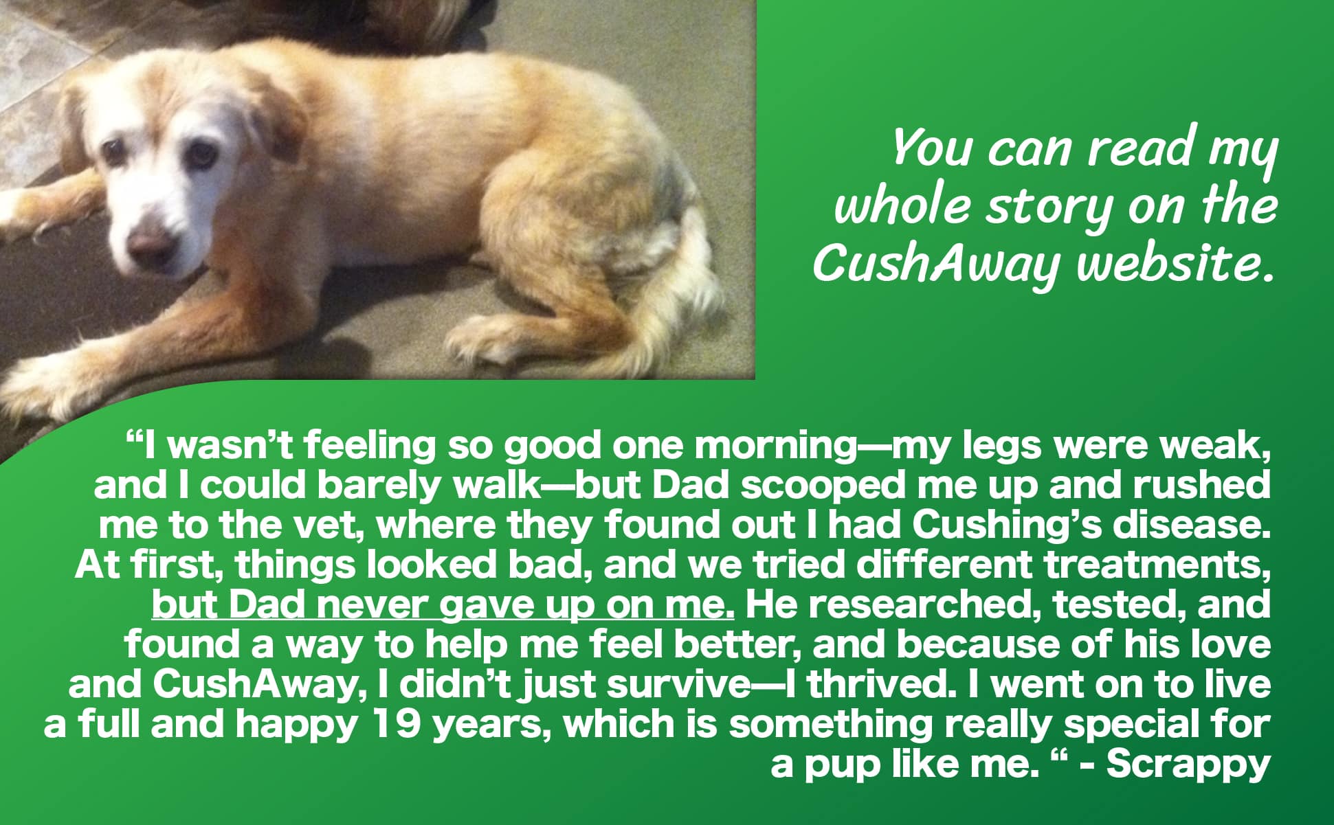 CushAway is a nutritional supplement formulated to support dogs with symptoms associated with Cushing’s disease. It is not a prescription medication, and CushAway Inc. is not a veterinary clinic or medical provider.